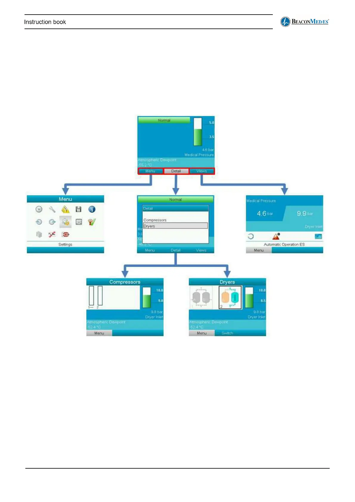 • Views screen: this screen gives the user an overview of the operation of the air plant. The user