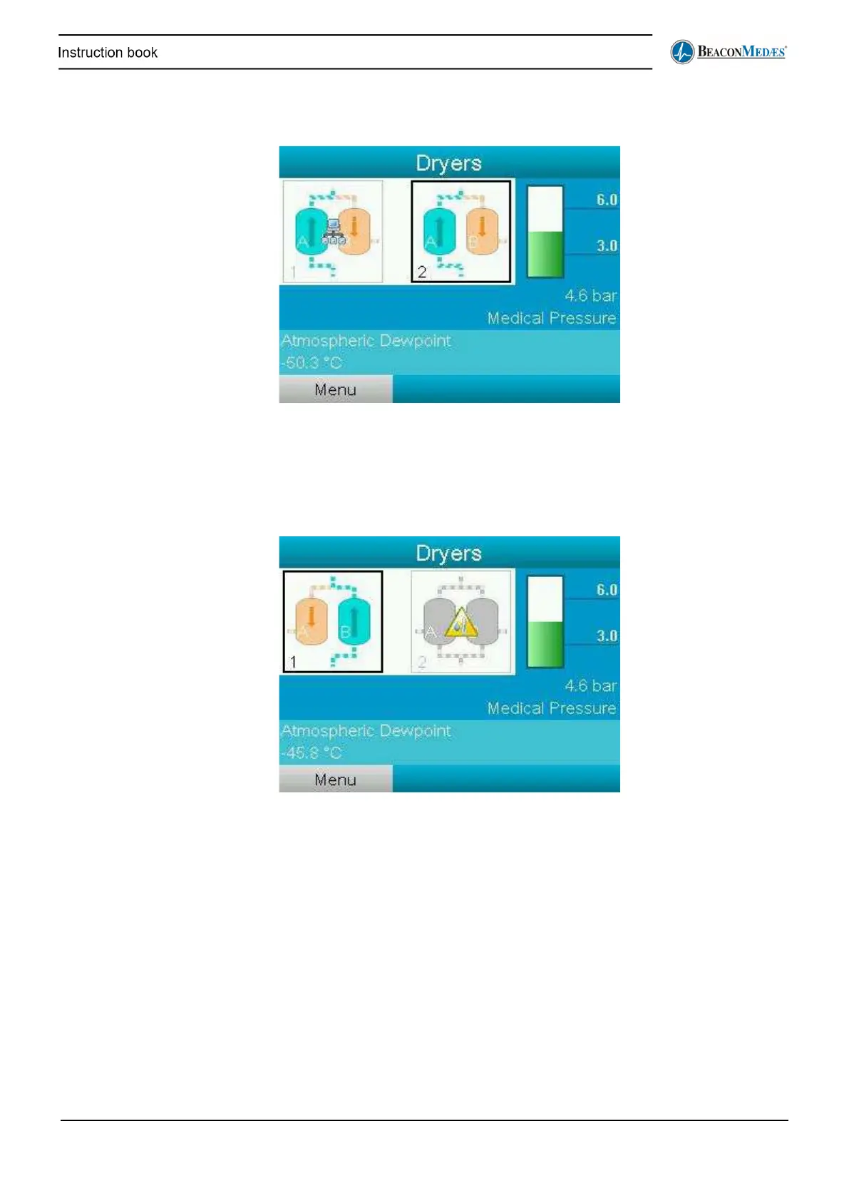 becomes too low. In this case the unit will switch automatically to the other dryer.
