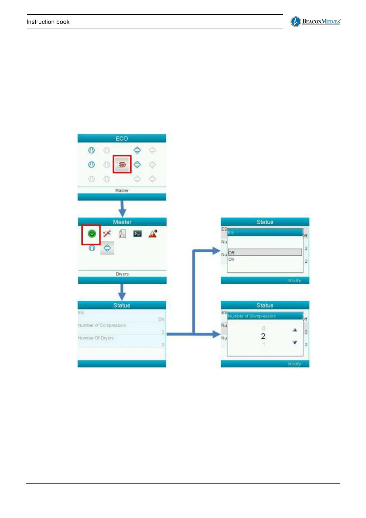 master ECO screen, with the general settings of the ECO. Selecting one of the compressors or