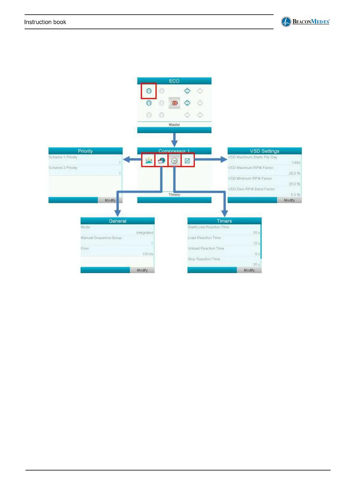 In the compressor menu the user can see and adapt some settings of the compressor.