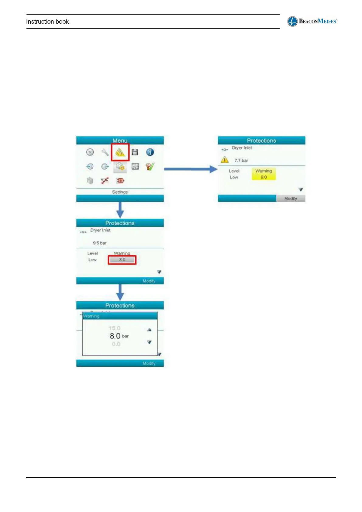 select modify and change the value to the desired setting. For the alarm settings on the medical