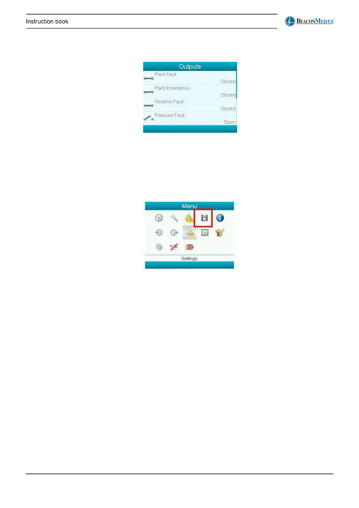 The outputs are the alarms that are potential-free transmitted to the hospital control room.