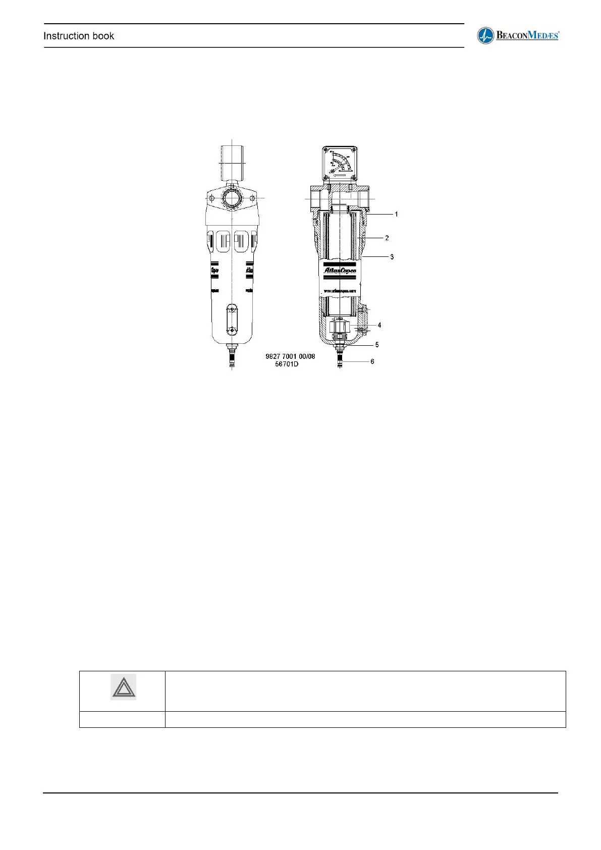1. Isolate the filter from the air net by closing the external inlet and outlet valve of the unit