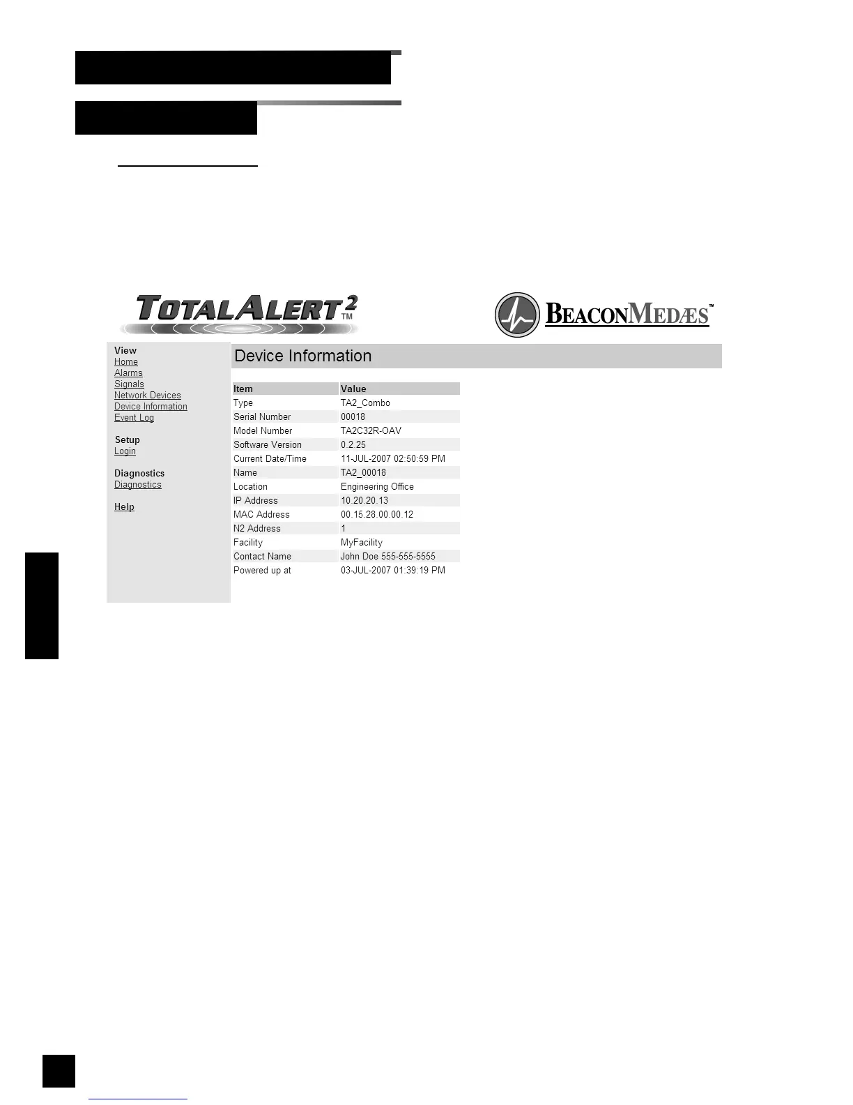 BeaconMedaes TotalAlert 2 - Browsing Alarm Web Pages (Cont.); Diagnostics