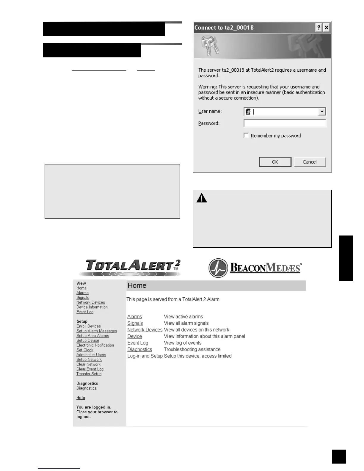 being used to access the alarm web pages,