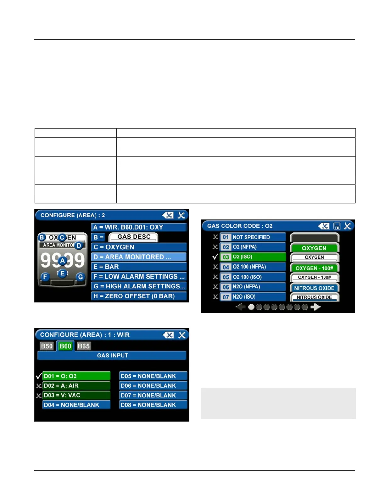 D = AREA MONITORED To edit the location label for the specic gas