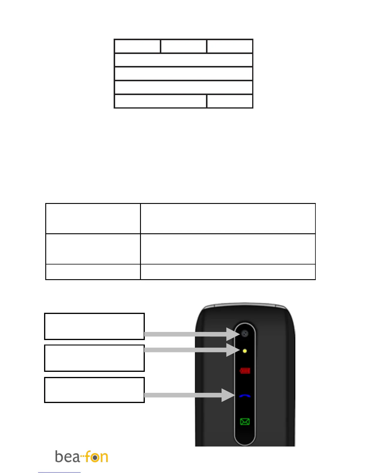 Beafon SL630 - Display (Standby Mode); LED Describtion