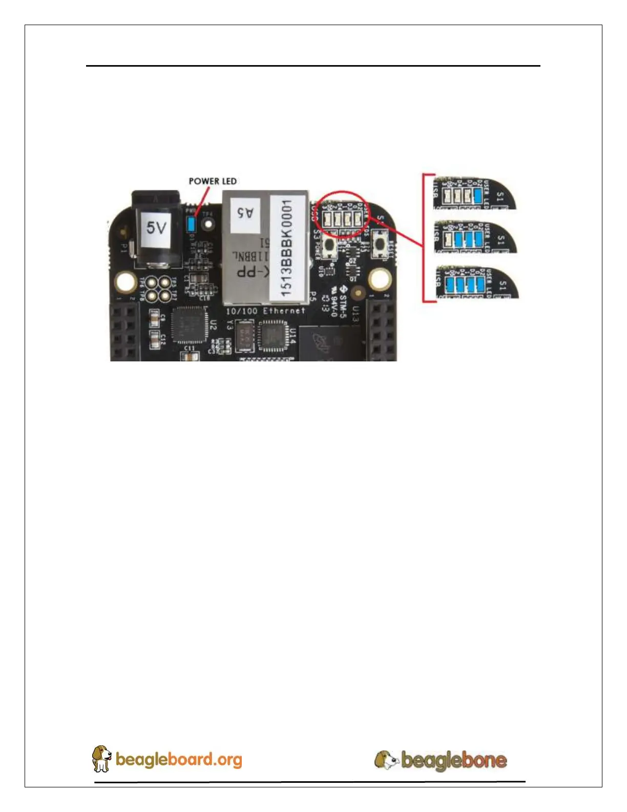 4. When the board starts to boot the LEDs will come on in sequence as shown in