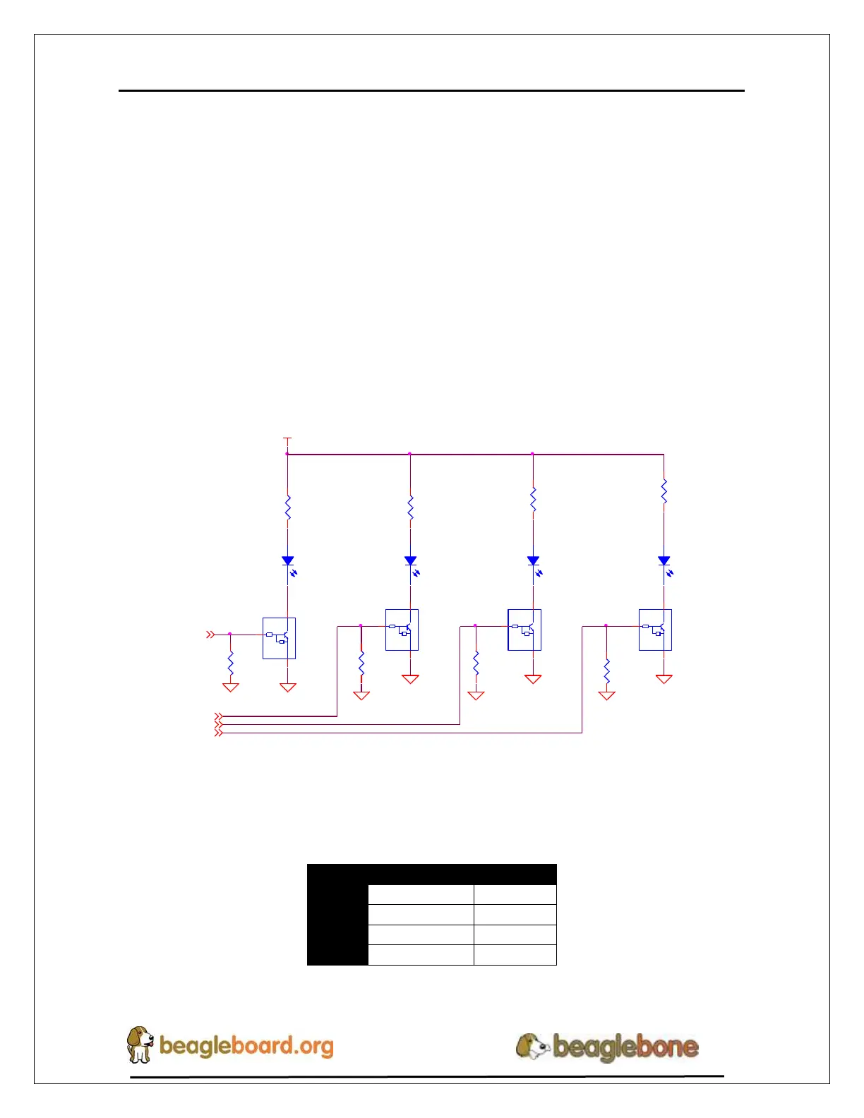 Table 7 shows the signals used to control the four LEDs from the processor.