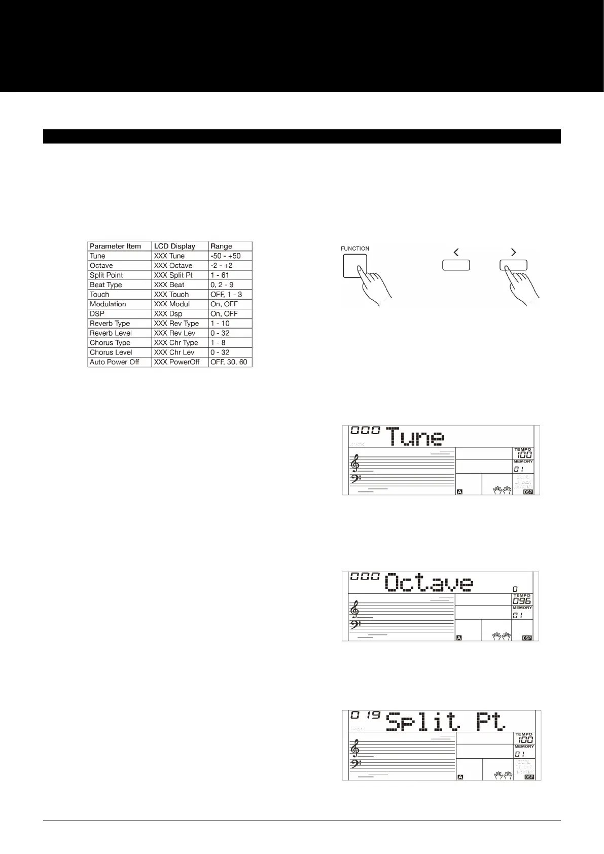 1. Repeatedly press the [FUNCTION] button to select the tune