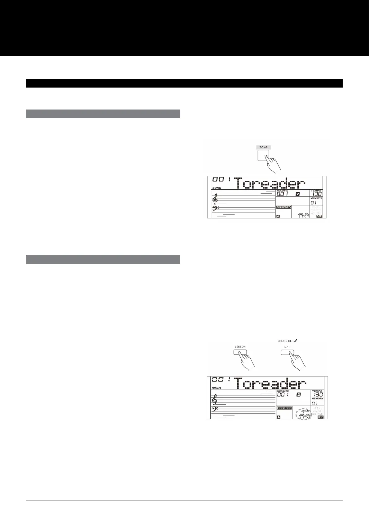 The instrument has a variety of songs (Please refer to the Song List). Each song can be practiced in LESSON mode.