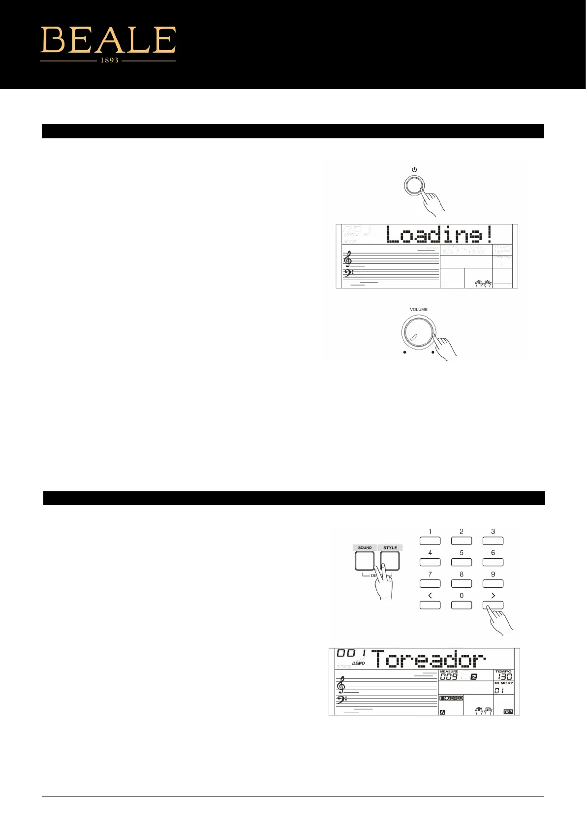 start playing all demo songs in a loop. The LCD will display