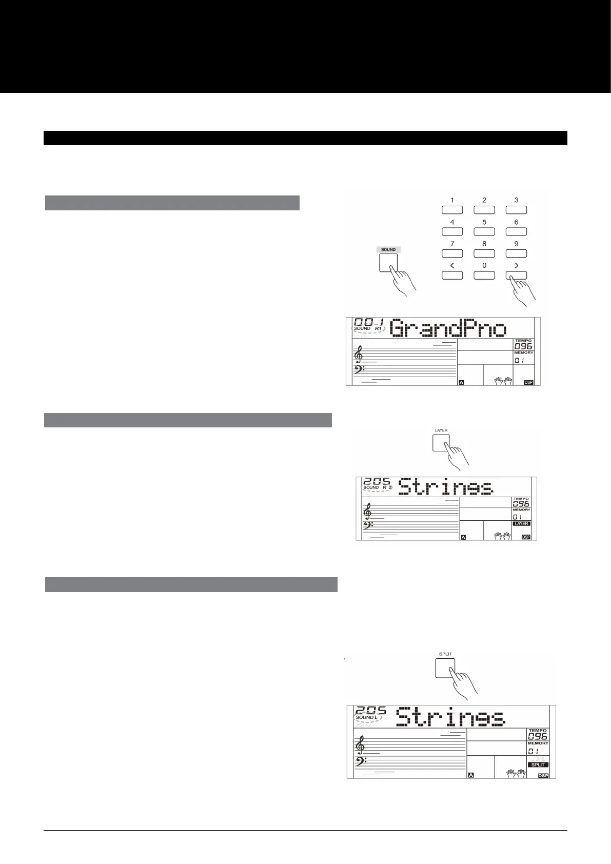 When the LAYER and SPLIT function is on, you can press [SOUND]