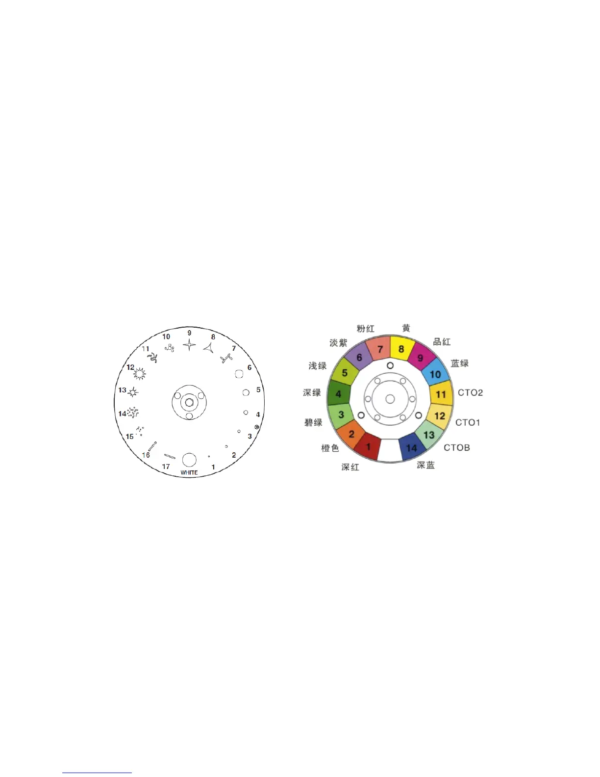 Color wheel: 14 colors + white, positive and negative bi-directional