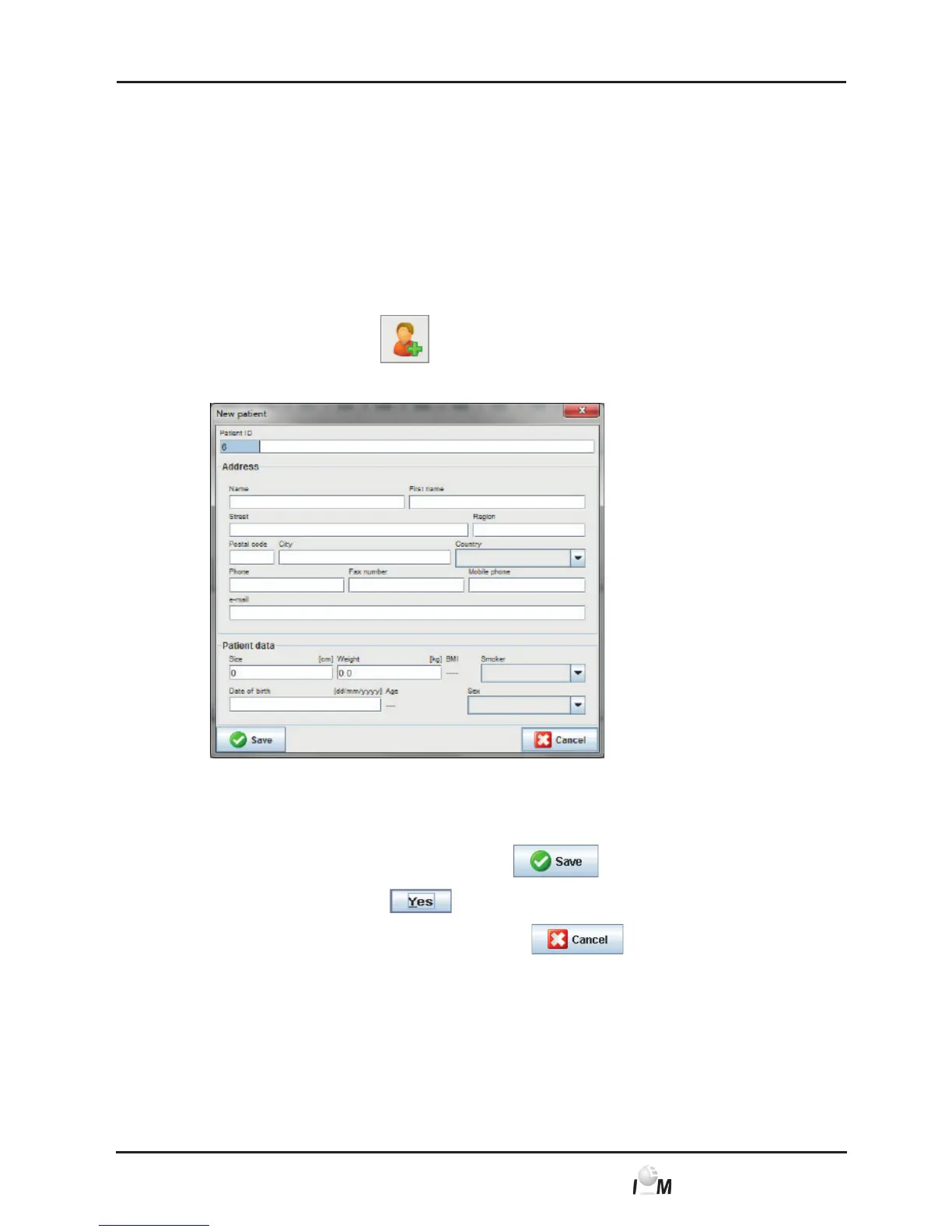 ■ add a new patient, see 4.6.1, Create New Patient