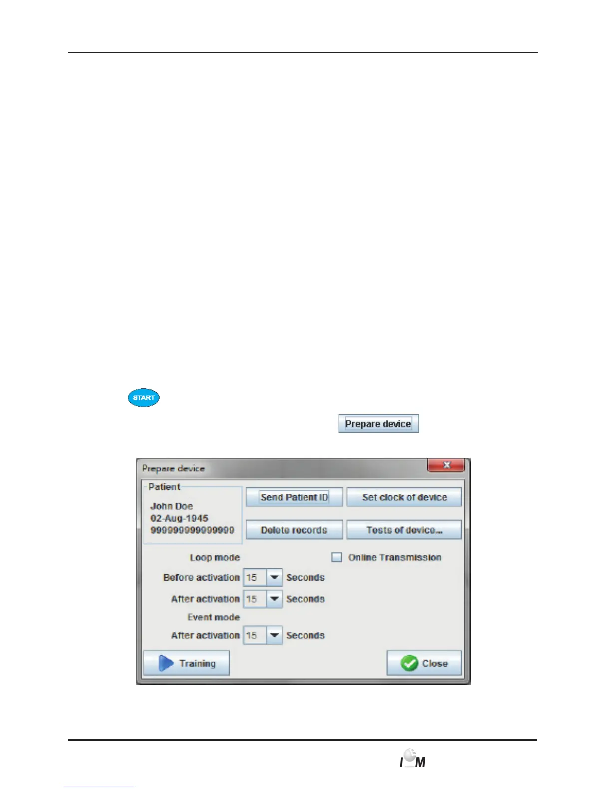 - Start training (Device test), see 4.8.7, Training