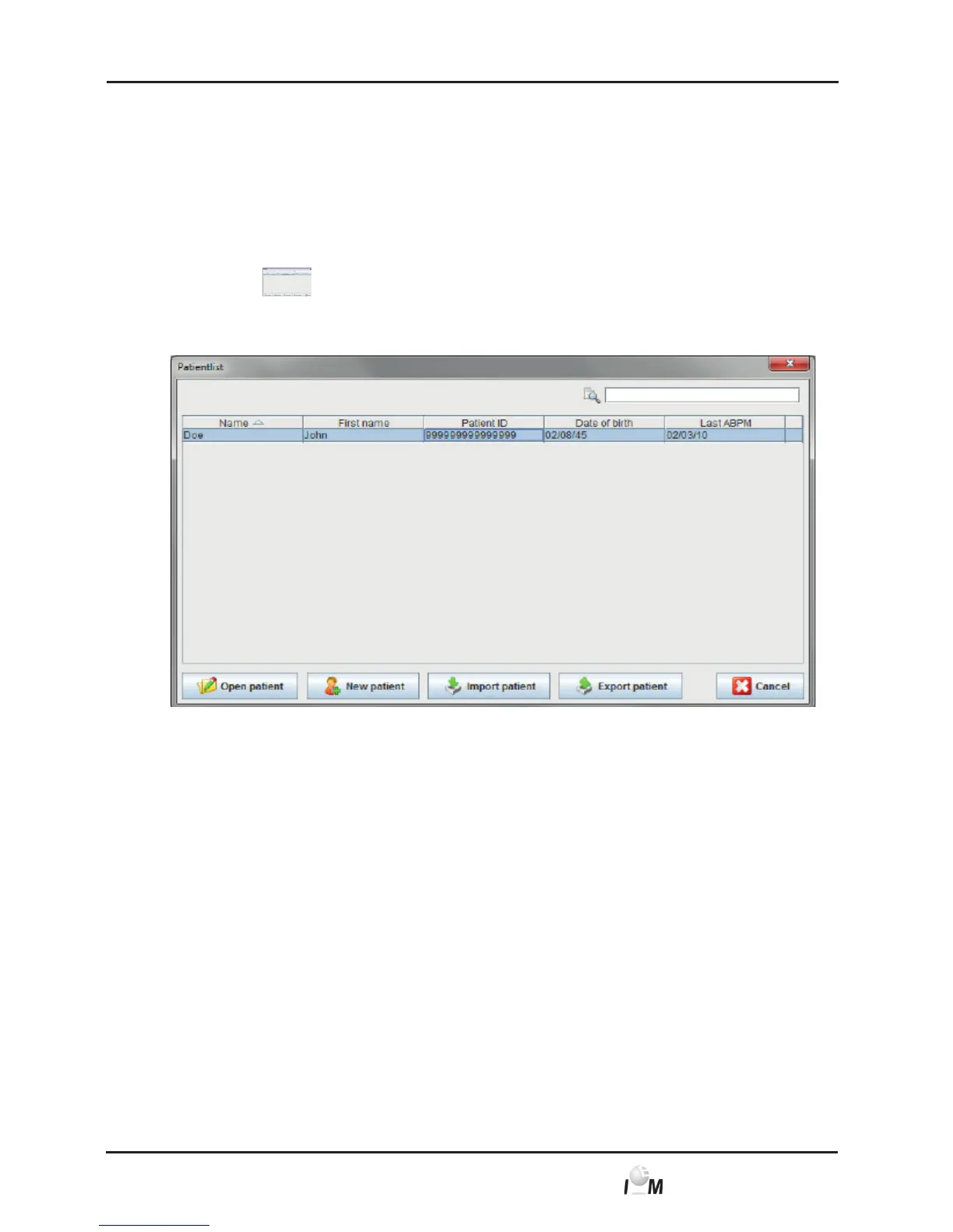 ► The patient list window appears.
