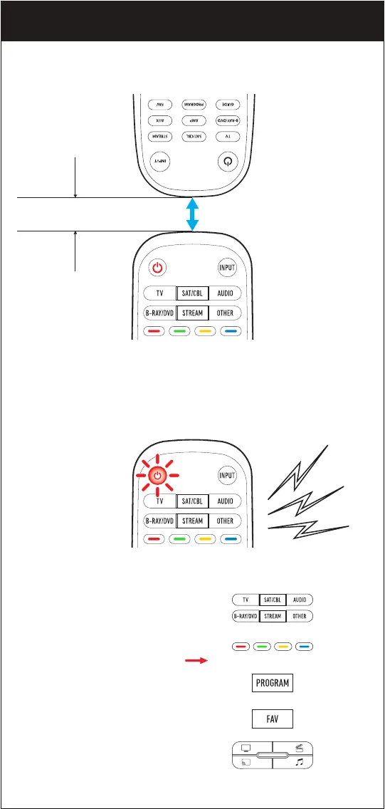 4. Hold both remotes approximately 0.5” - 1.0” from each other as shown