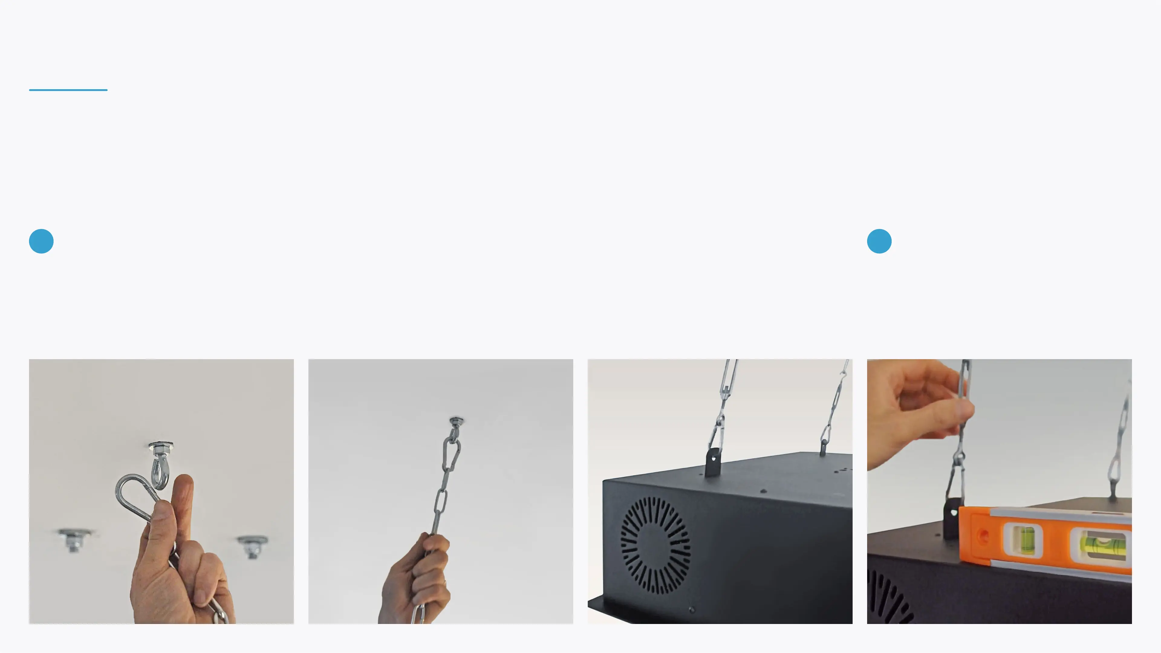 Mount the device by attaching one end of each chain to each of the hook bolt
