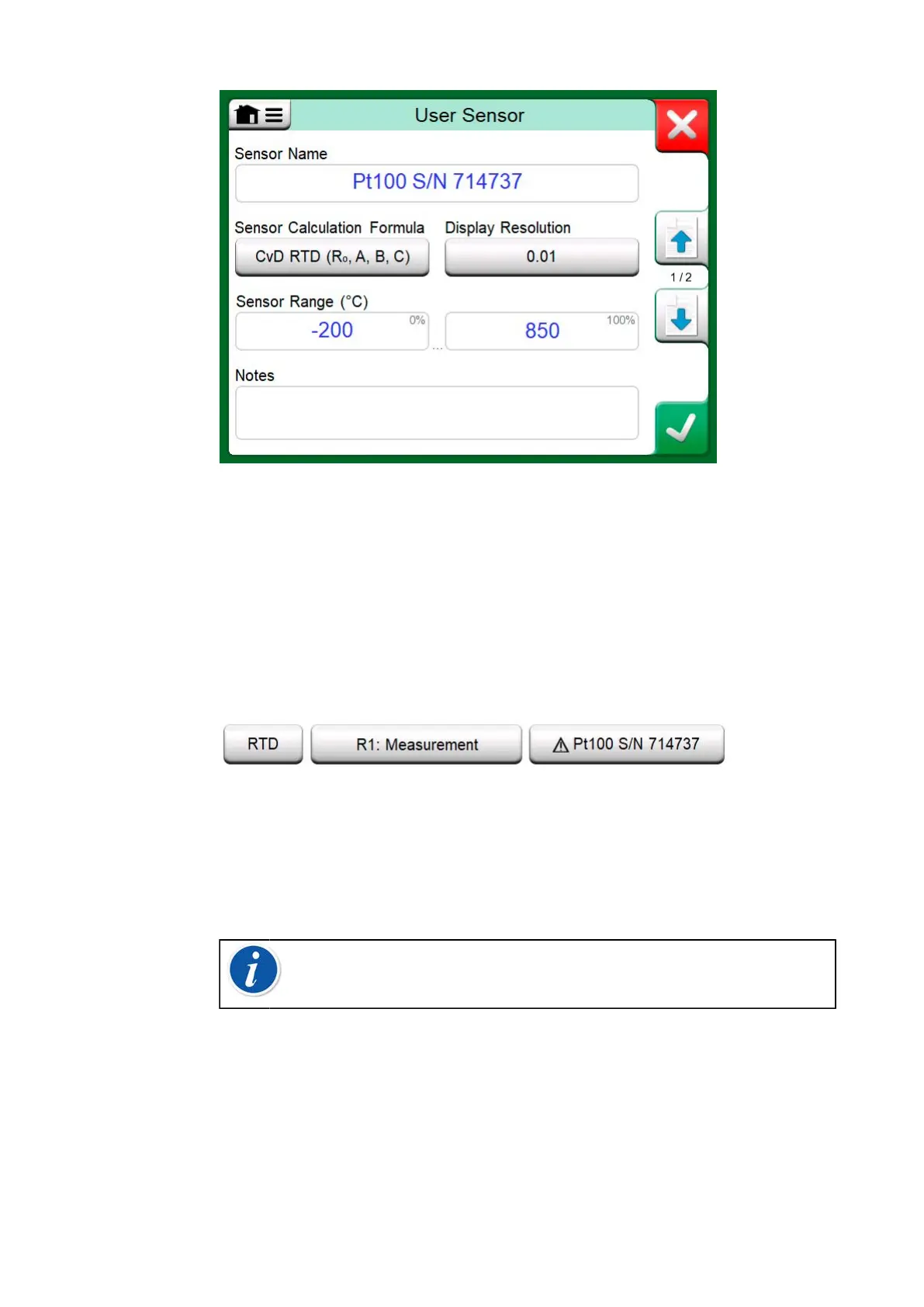 When a user defined PRT sensor is in use, the sensor button displays a