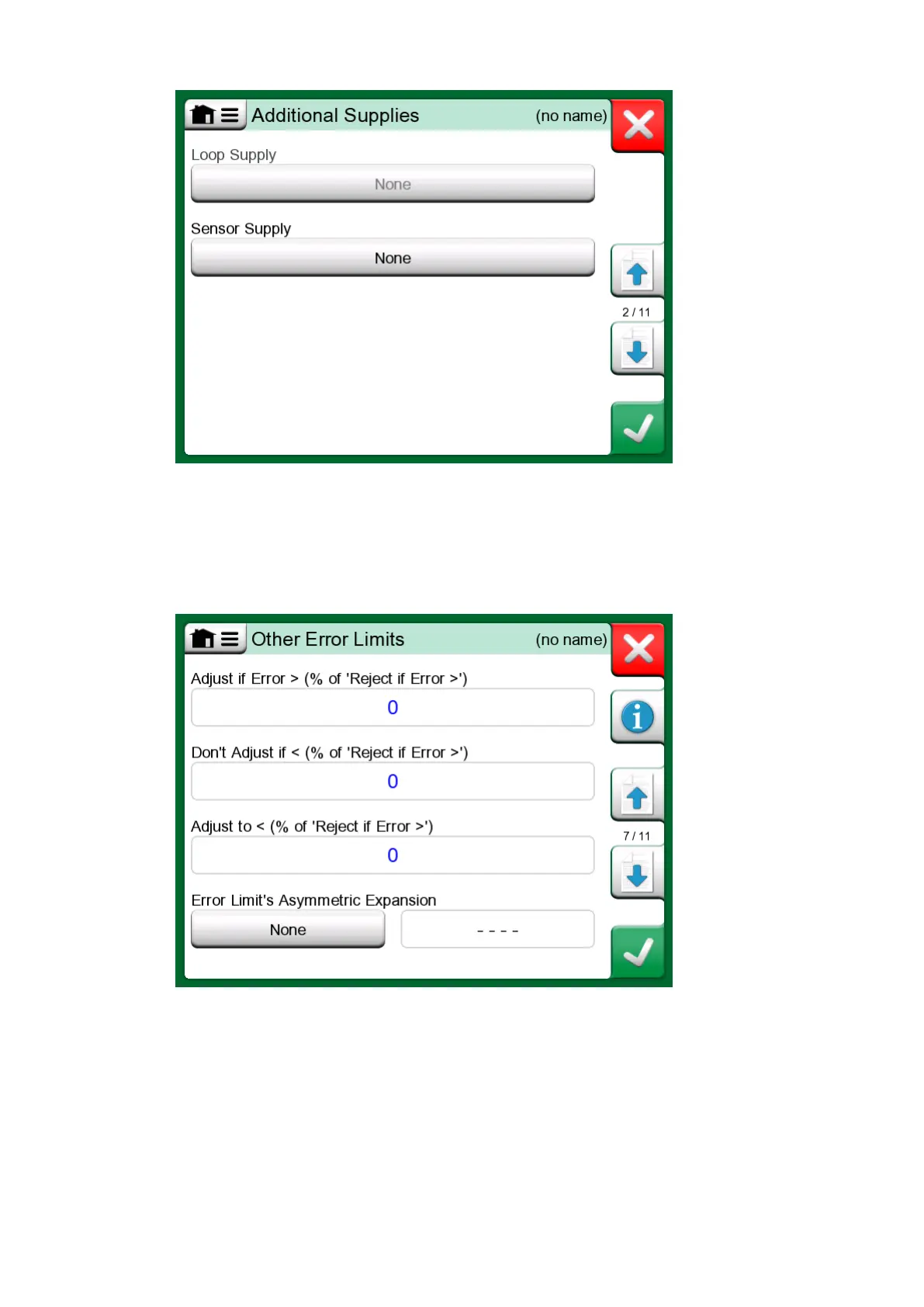 Error Limits) helps to define additional error limits and possible messages