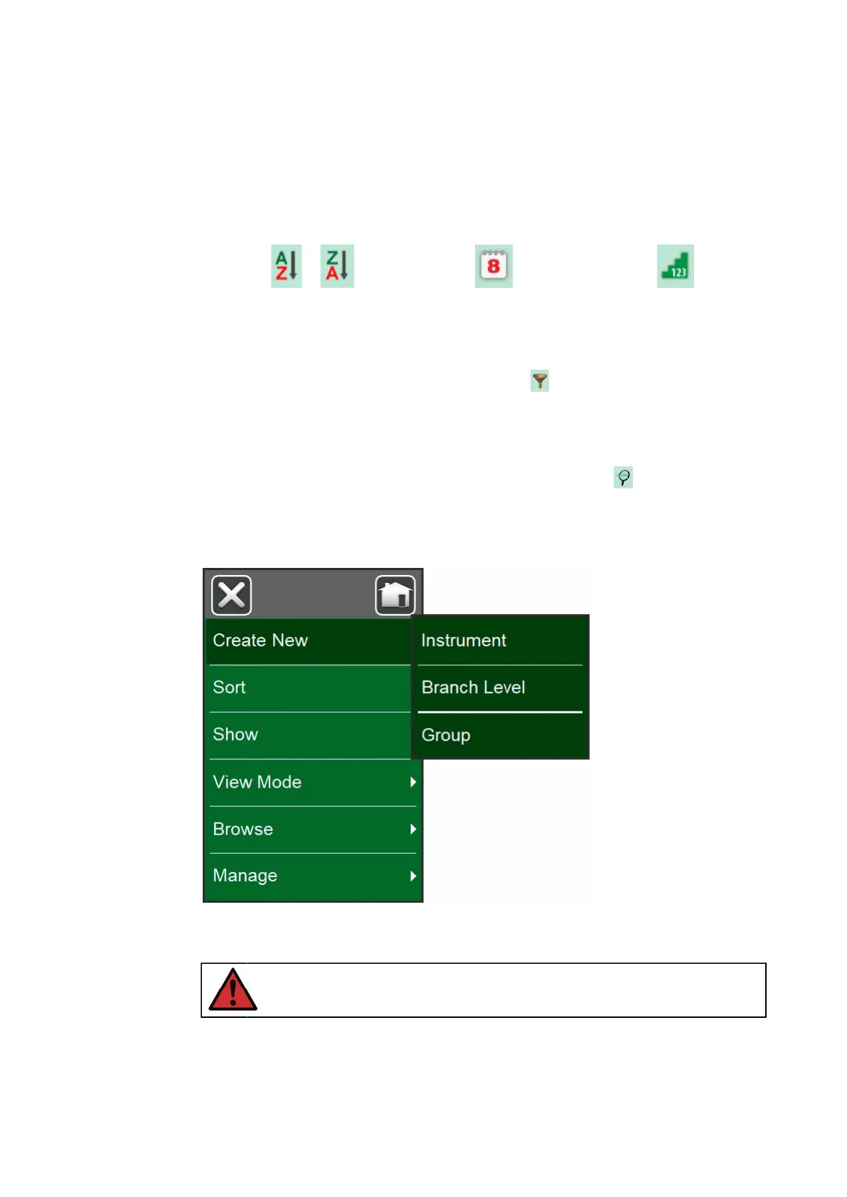 • Create New for creating a new Instrument etc. (See Figure 76: