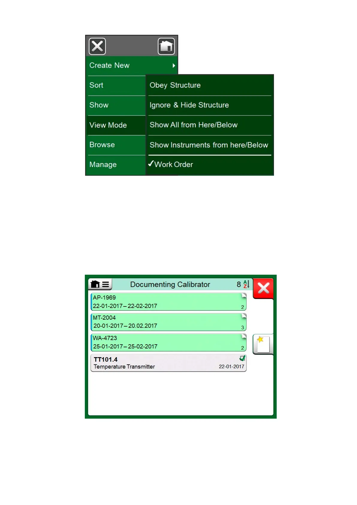 If Work Order View is active, a list of Work Orders are shown. Work Orders