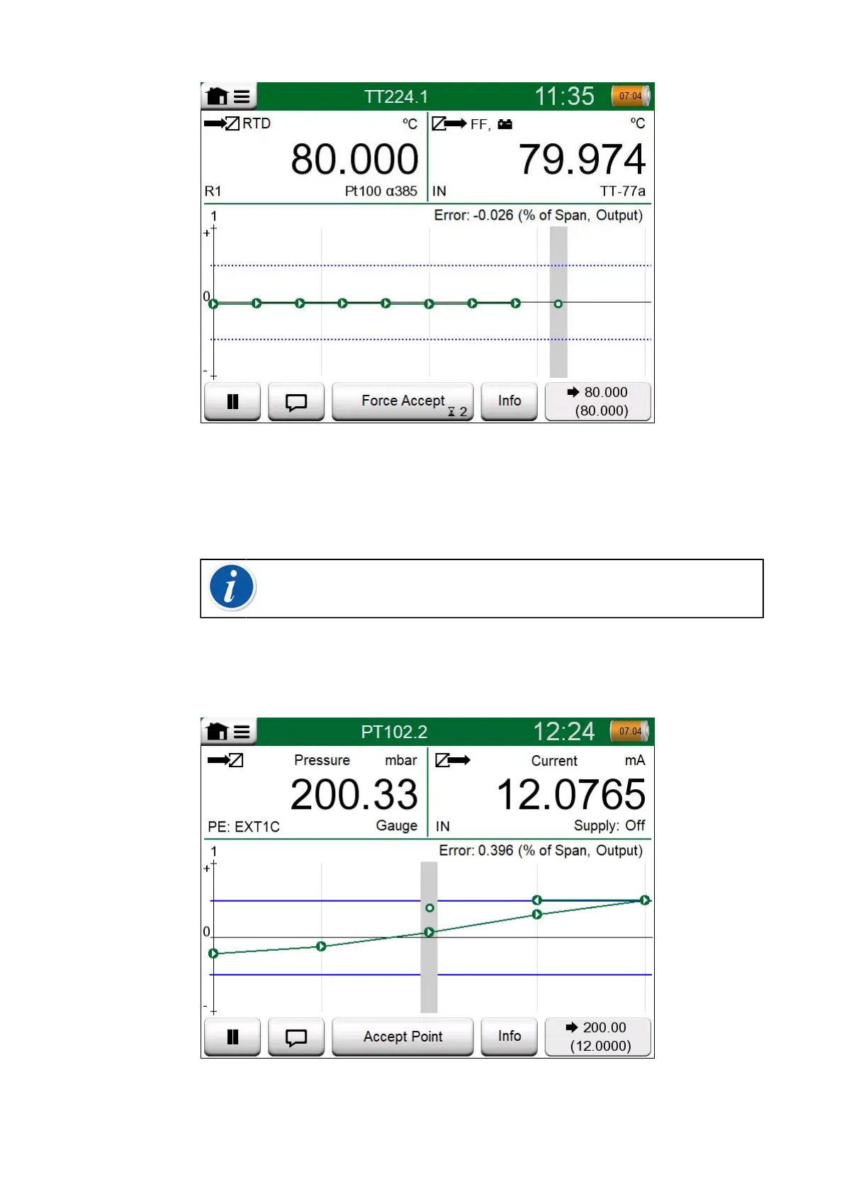 Figure 84: Calibration with Automatic Acceptance in use