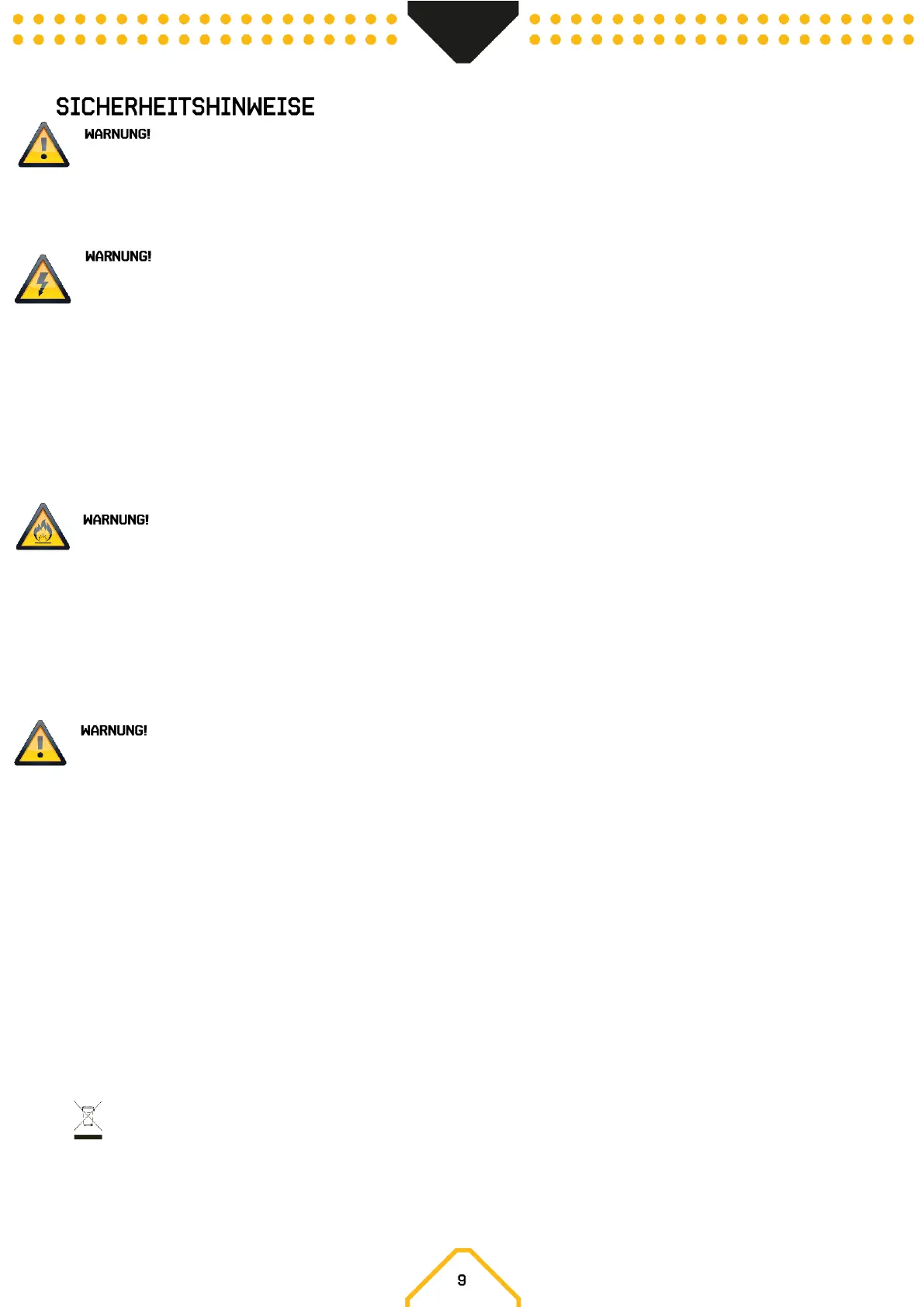 • Beachten Sie alle Sicherheitshinweise. Entfernen Sie niemals Sicherheitshinweise oder andere Informationen vom Gerät.