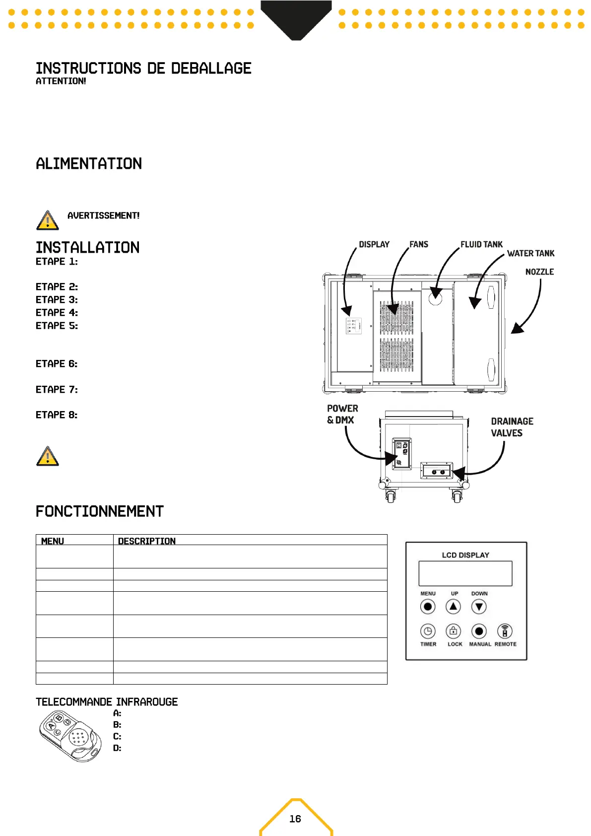Lorsque l’affichage indique “READY”, vous pouvez démarrer la production de fumée et effectuer les réglages via le panneau d’affichage.