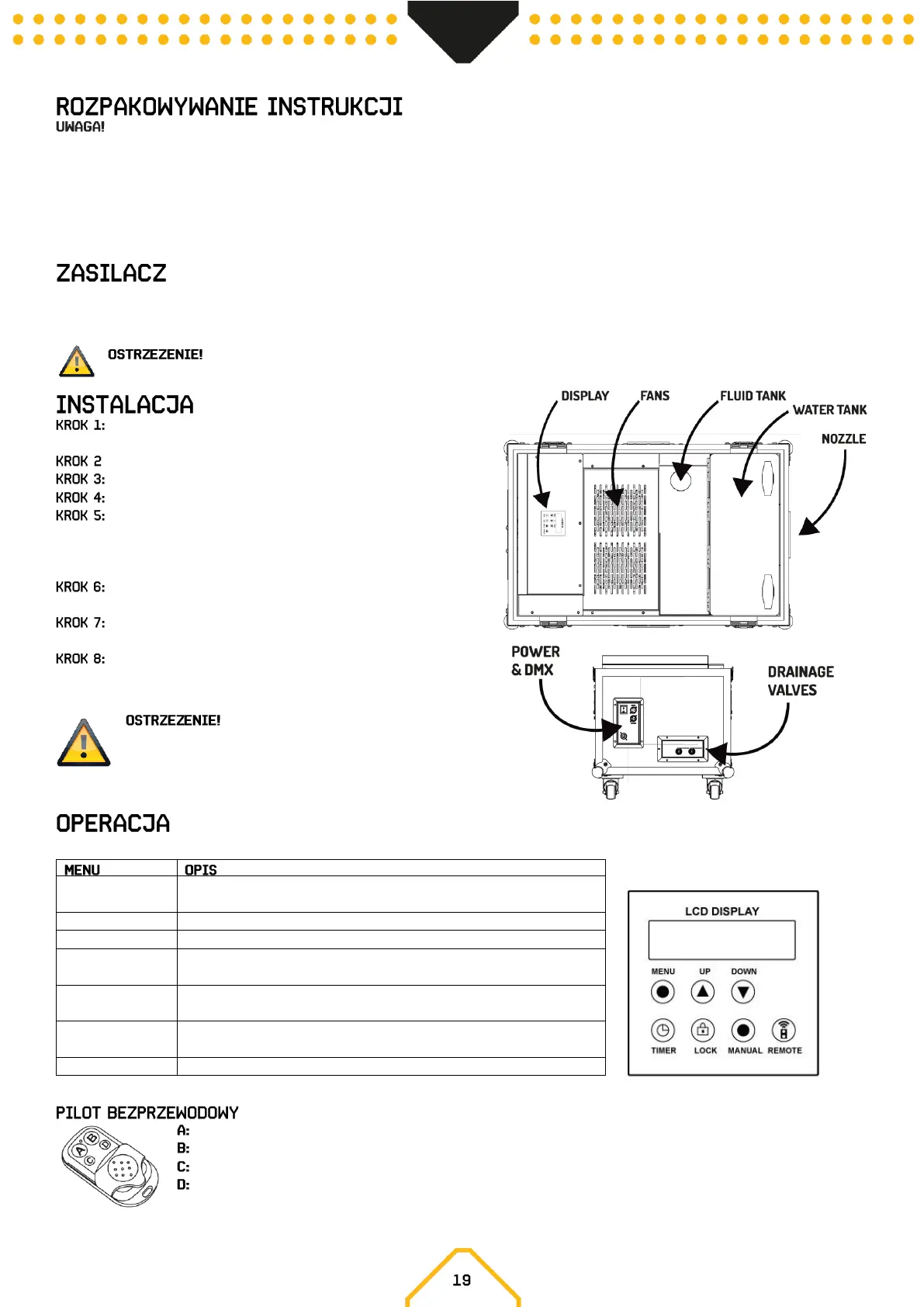 komunikat „WARMING UP”. Po kilku sekundach na wyświetlaczu LCD pojawi się