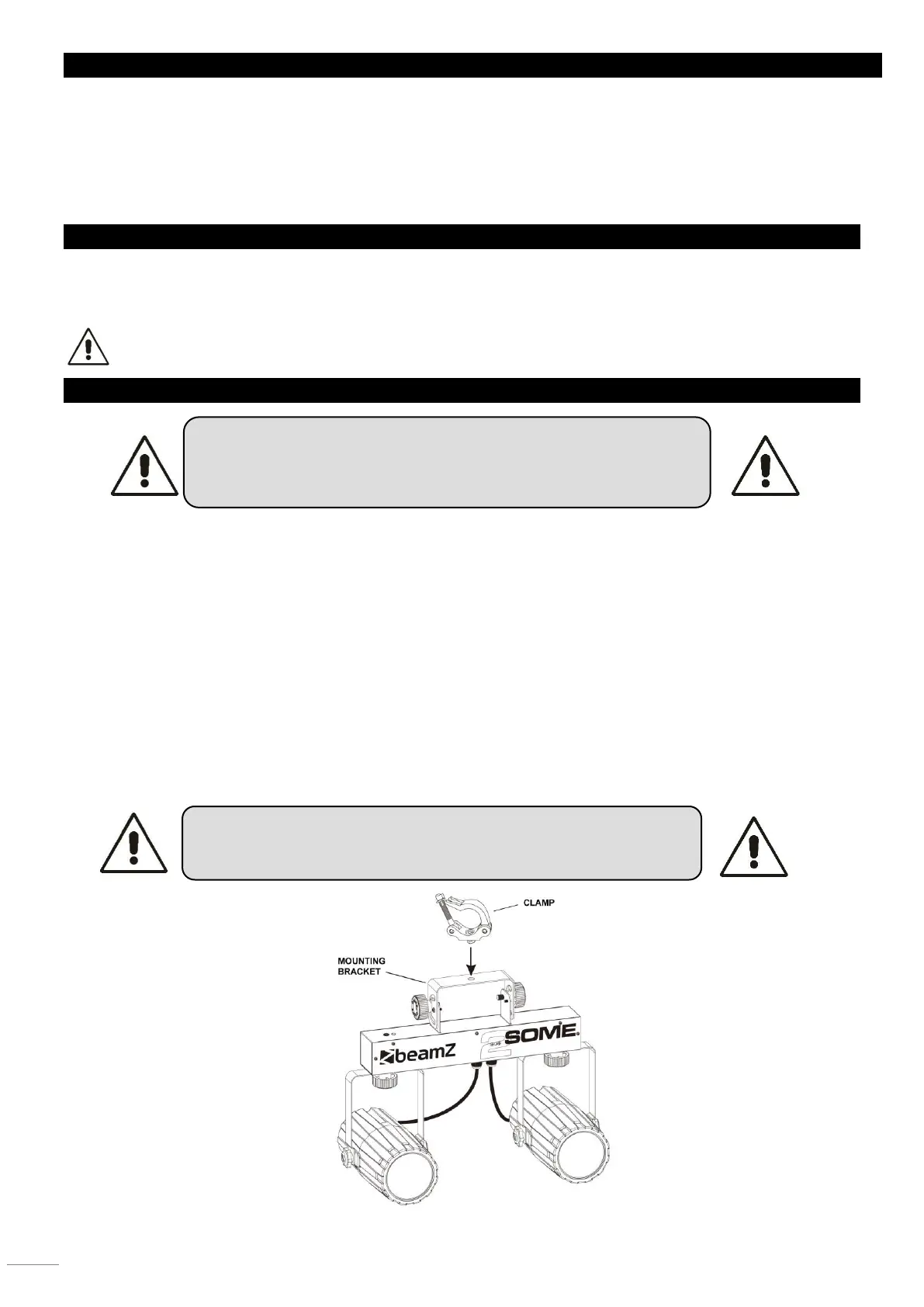 • Das Gerät darf nur über den Montagebügel (nicht enthalten) an der mitgelieferten Hänge-/Befestigungsbügel installiert