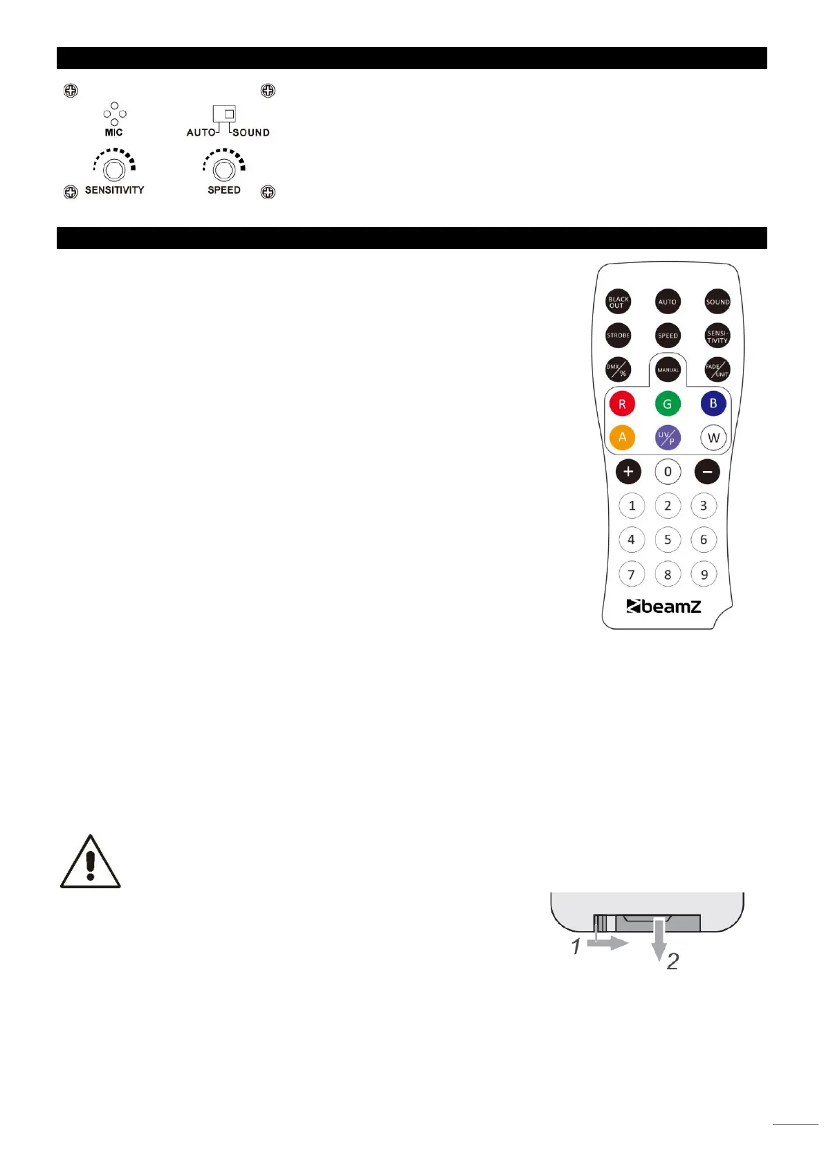 retire la pila de su soporte (2). El mando utiliza pilas 3 V de tipo botón.