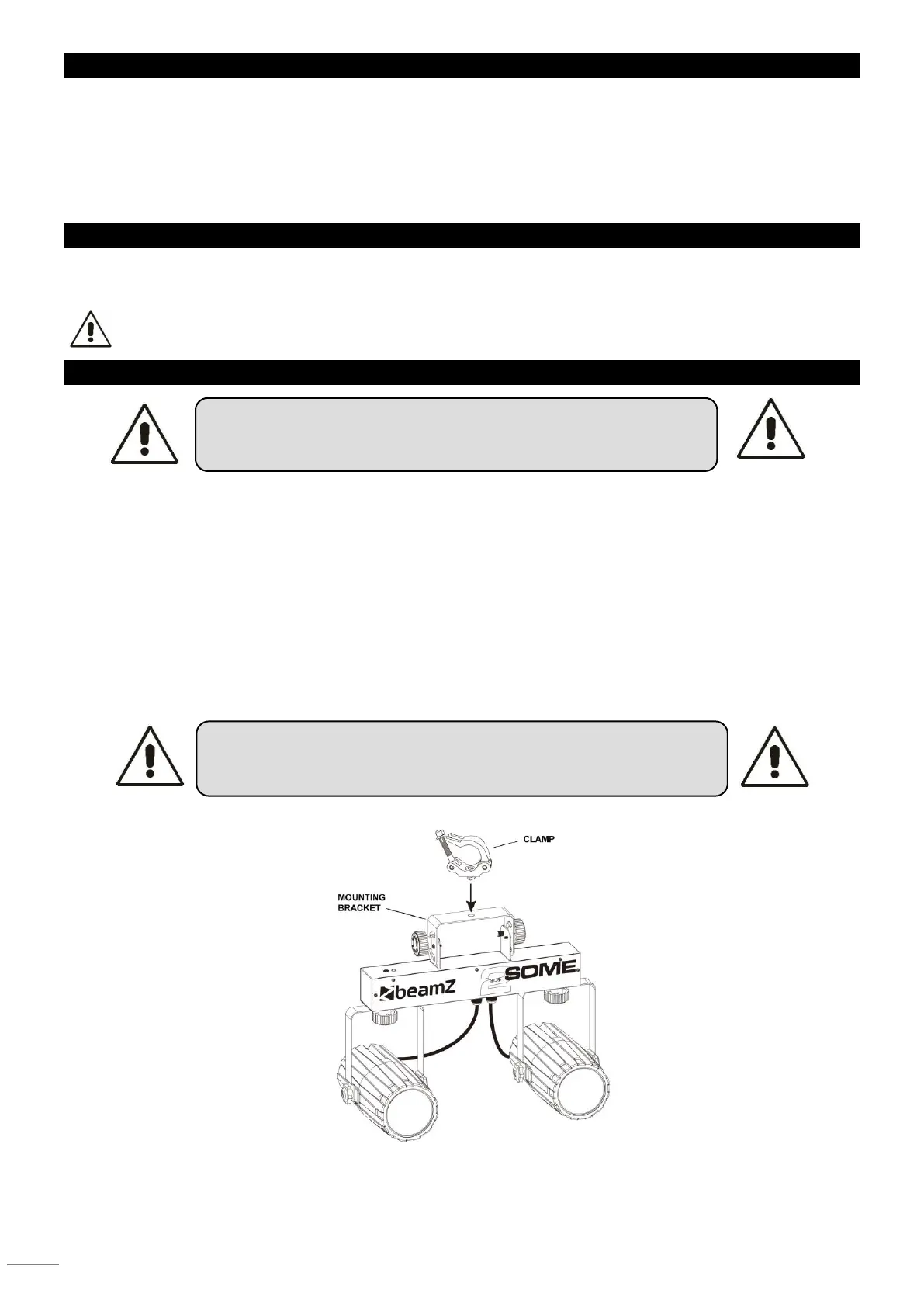 The installation must always be secured with a secondary safety attachment, e.g. an appropriate catch net. This