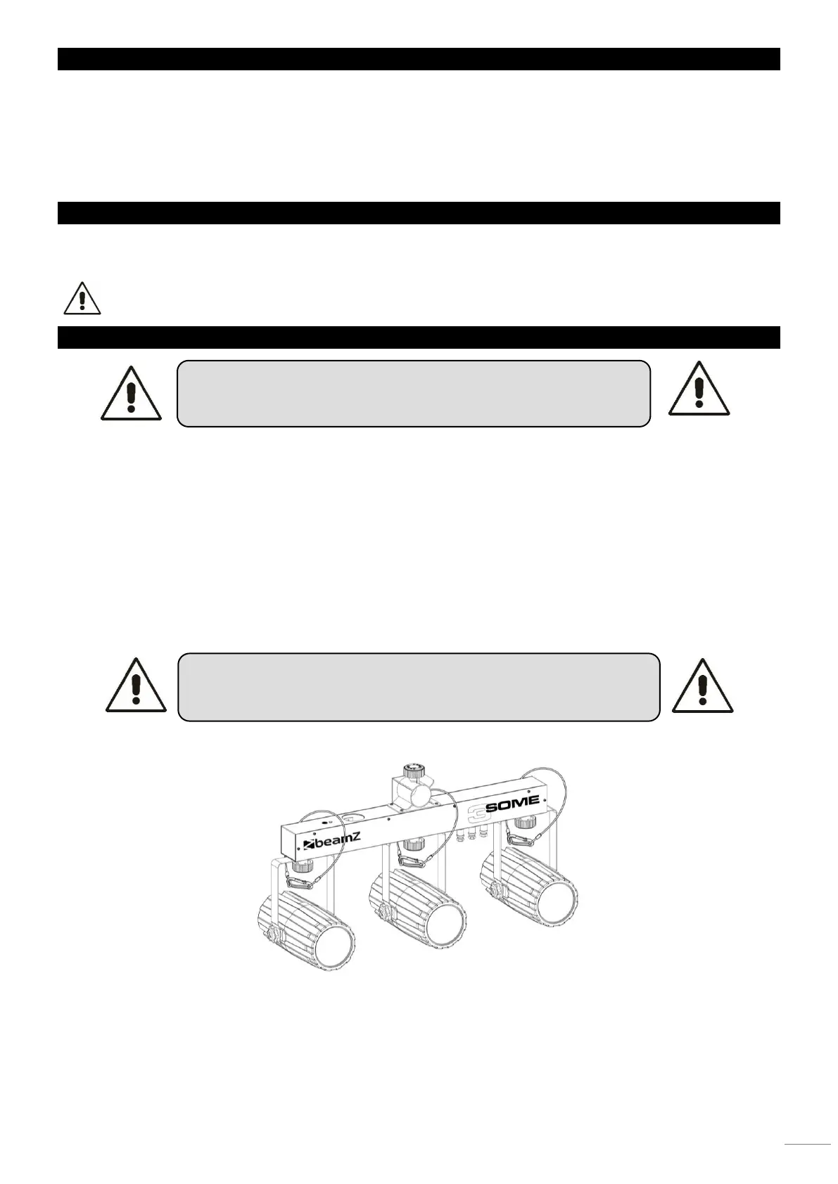The installation must always be secured with a secondary safety attachment, e.g. an appropriate catch net. This