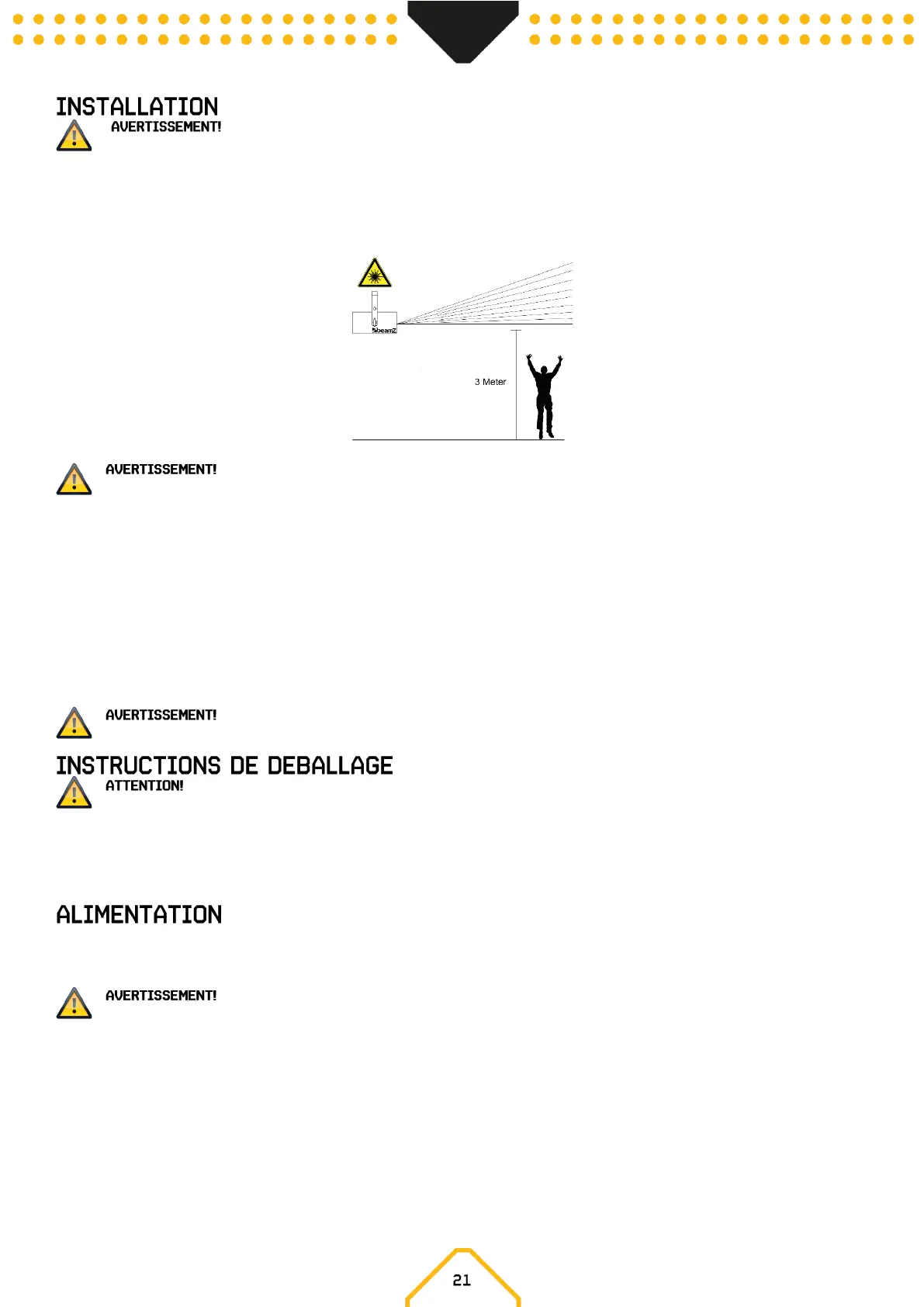 le plus bas. Voir dessin ci-dessous. De plus, une séparation horizontale de 2,5 m est nécessaires entre le faisceau laser et le public ou tout autre espace
