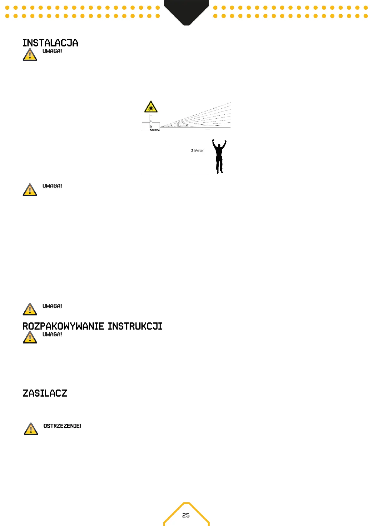 wieszania urządzeń w taki sam sposób, jak na załączonym obrazku. Minimum 3m przestrzeni pomiędzy podłogą, a najniższą wysokością świecenia lasera