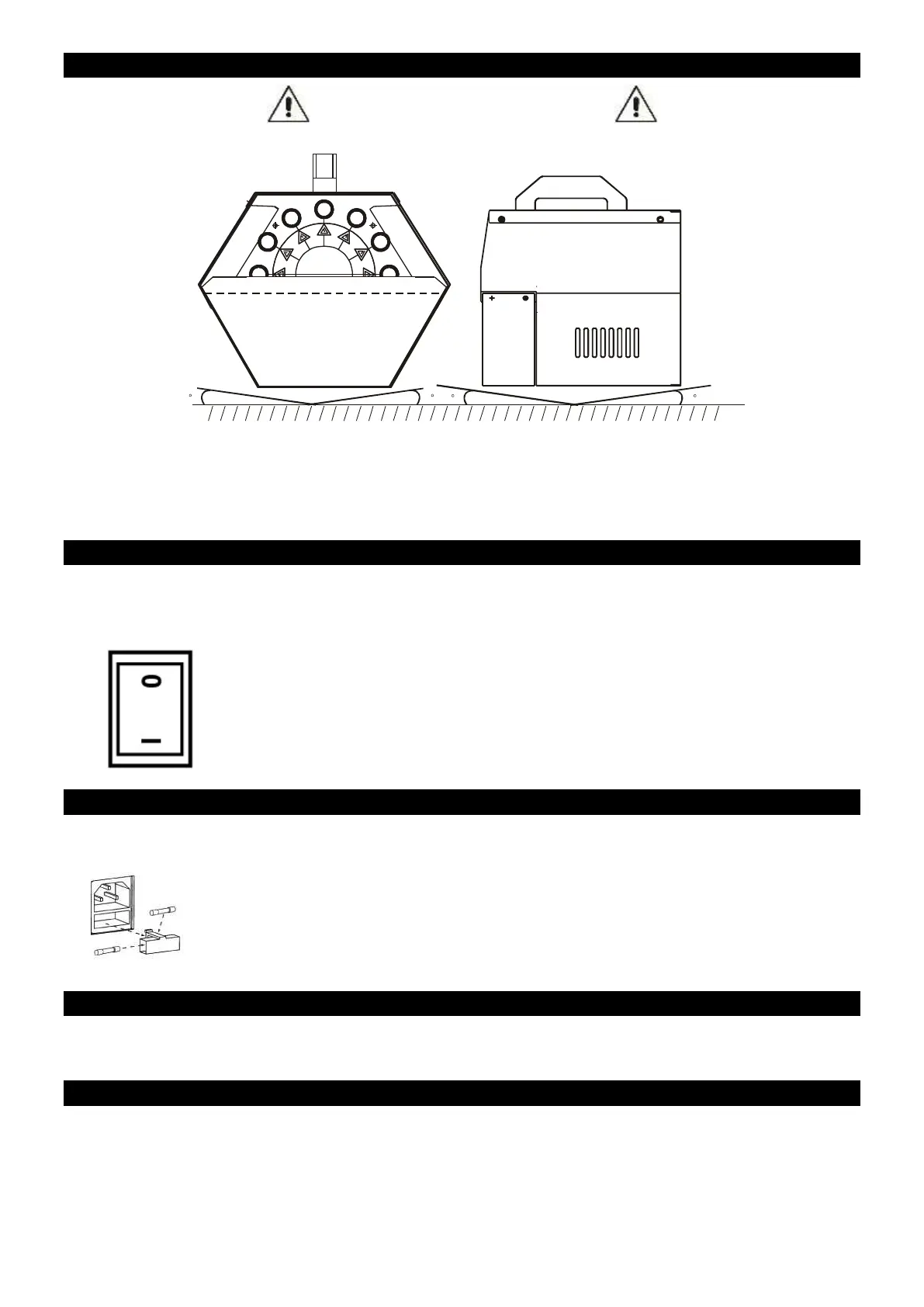 Once the reservoir has been filled. Connect the power lead into smoke machine and earthed mains outlet. Then you can switch