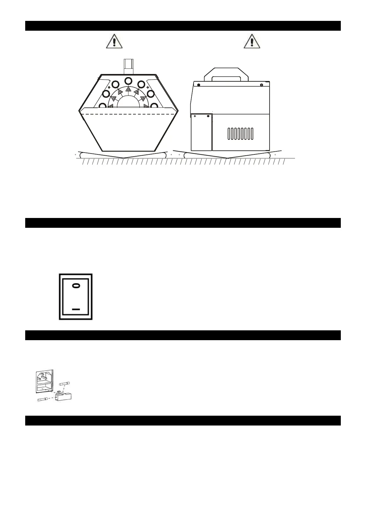 rookmachine inschakelen d.m.v. AAN/UIT schakelaar. Door het indrukken van de schakelaar op de afstandsbediening zal de