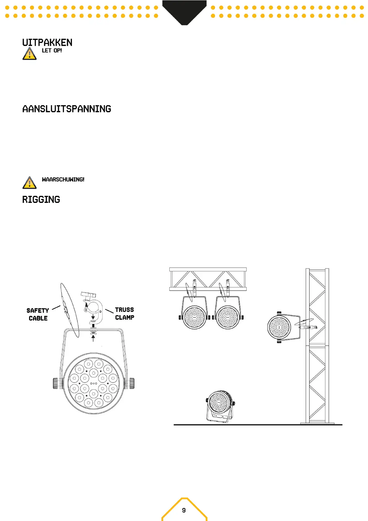 Volg bij het uitvoeren van een installatie altijd de Europese en nationale richtlijnen met betrekking tot rigging, truss en alle andere