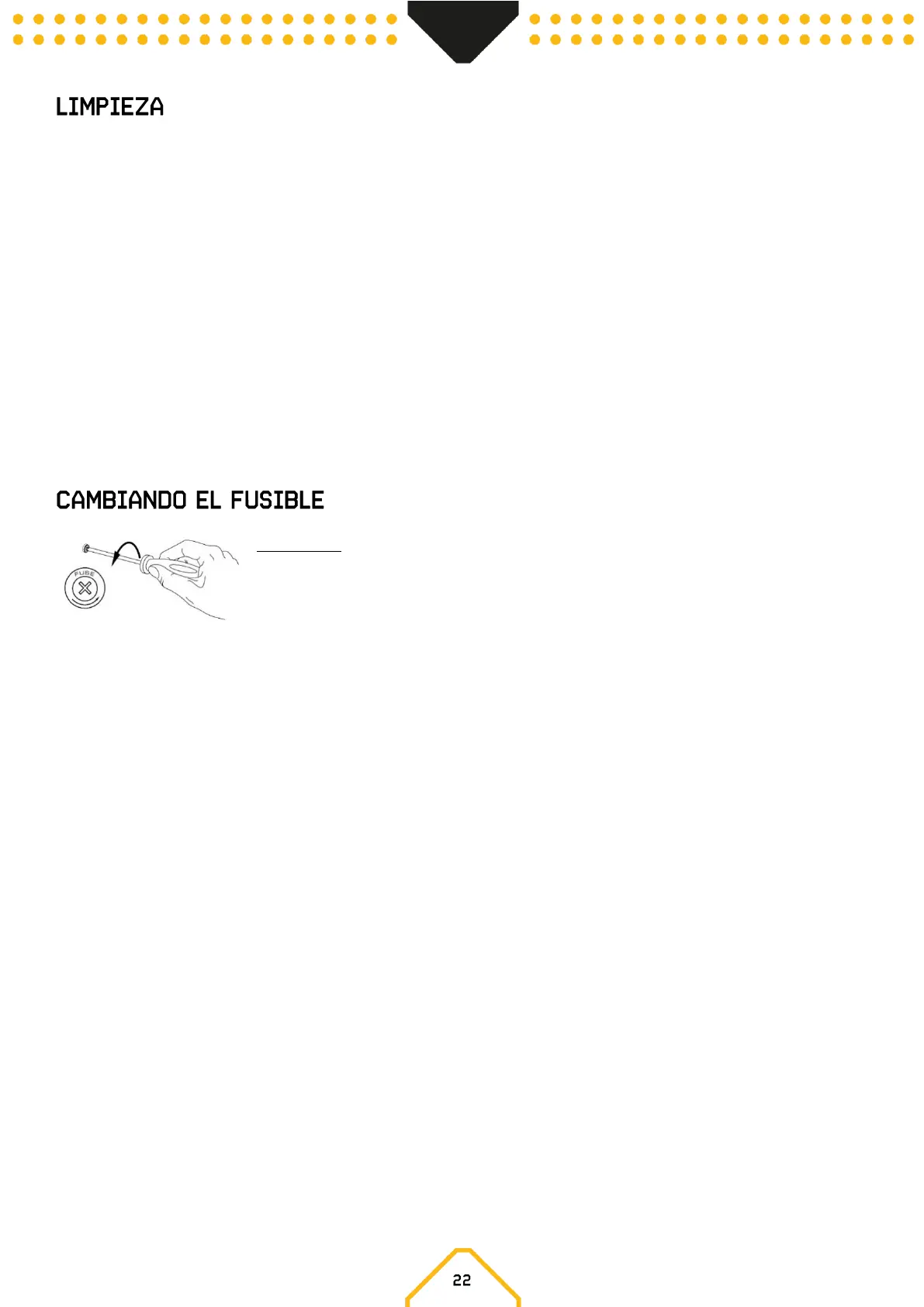 Si el fusible está defectuoso, sustitúyalo por un fusible del mismo tipo y valor. Antes de cambiar el fusible, desenchufe el cable de alimentación.