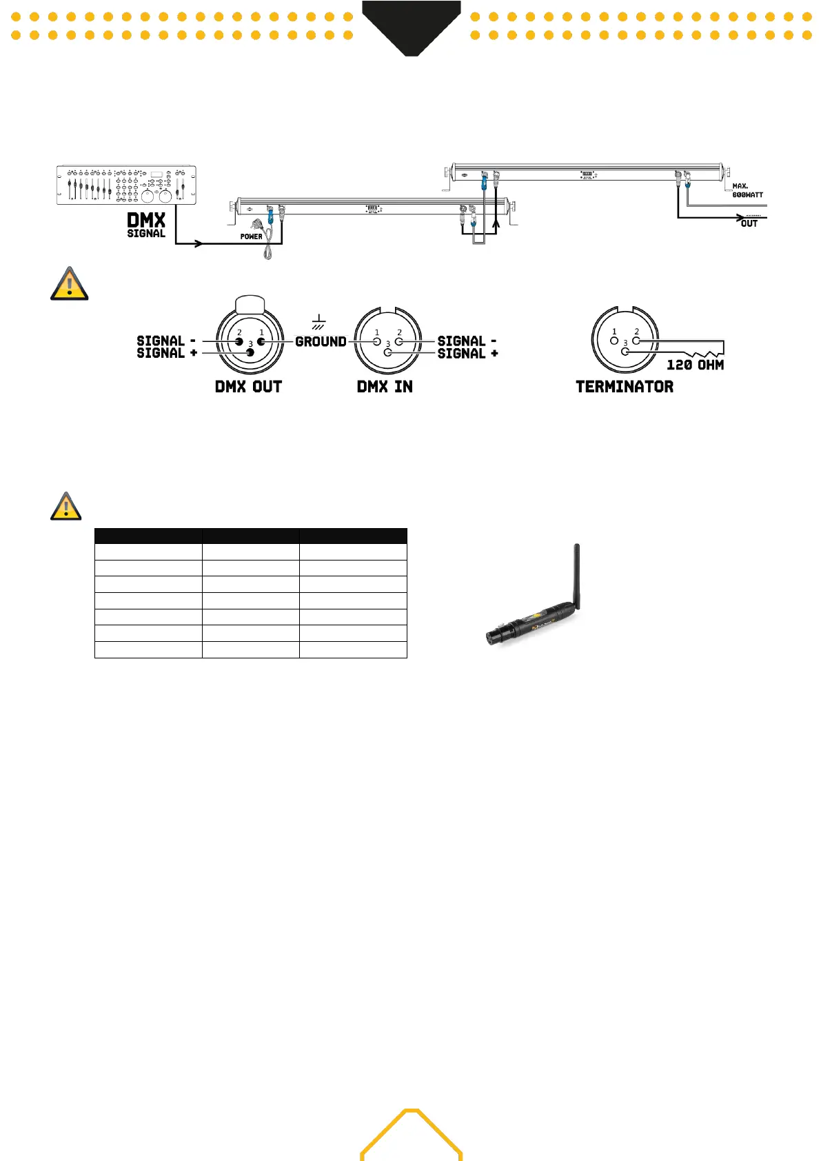 LET OP! Bij het laatste apparaat, dient u de DMX-lijn af te sluiten met een eindweerstand. Neem een XLR connector en soldeer een 120 Ohm