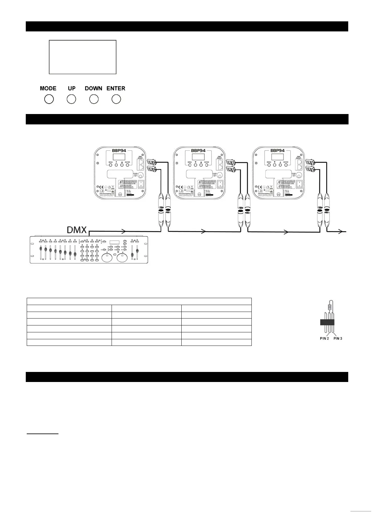 in een 3-polige DMX lijn worden uitgevoerd. Bij het plaatsen van standard 5-polige datakabels in een 3-polige DMX lijn, moet er
