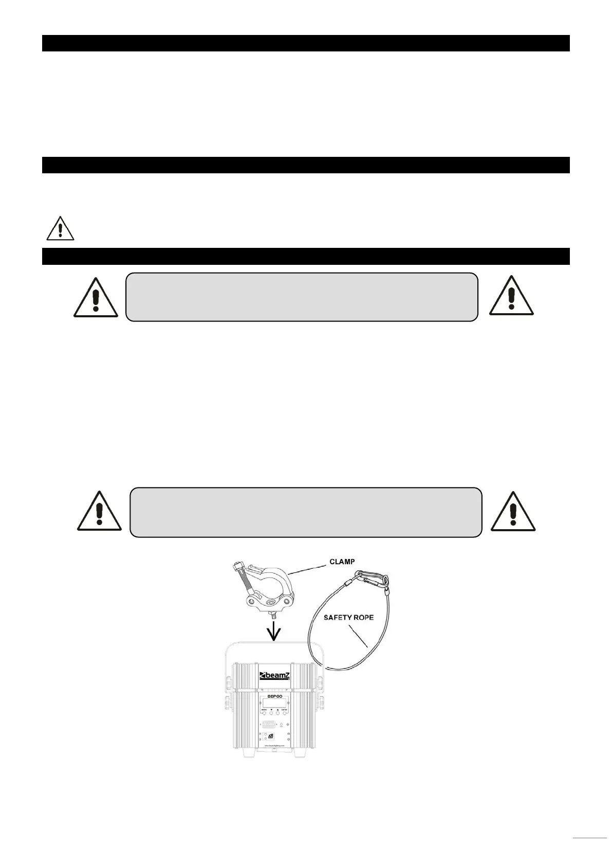 • The installation must always be secured with a secondary safety attachment, e.g. an appropriate catch net. This