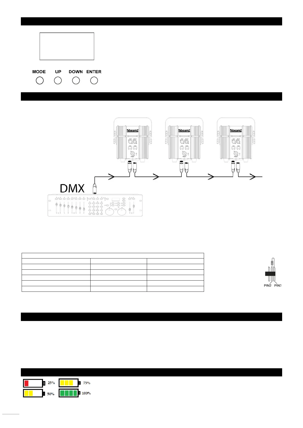 in een 3-polige DMX lijn worden uitgevoerd. Bij het plaatsen van standard 5-polige datakabels in een 3-polige DMX lijn, moet er