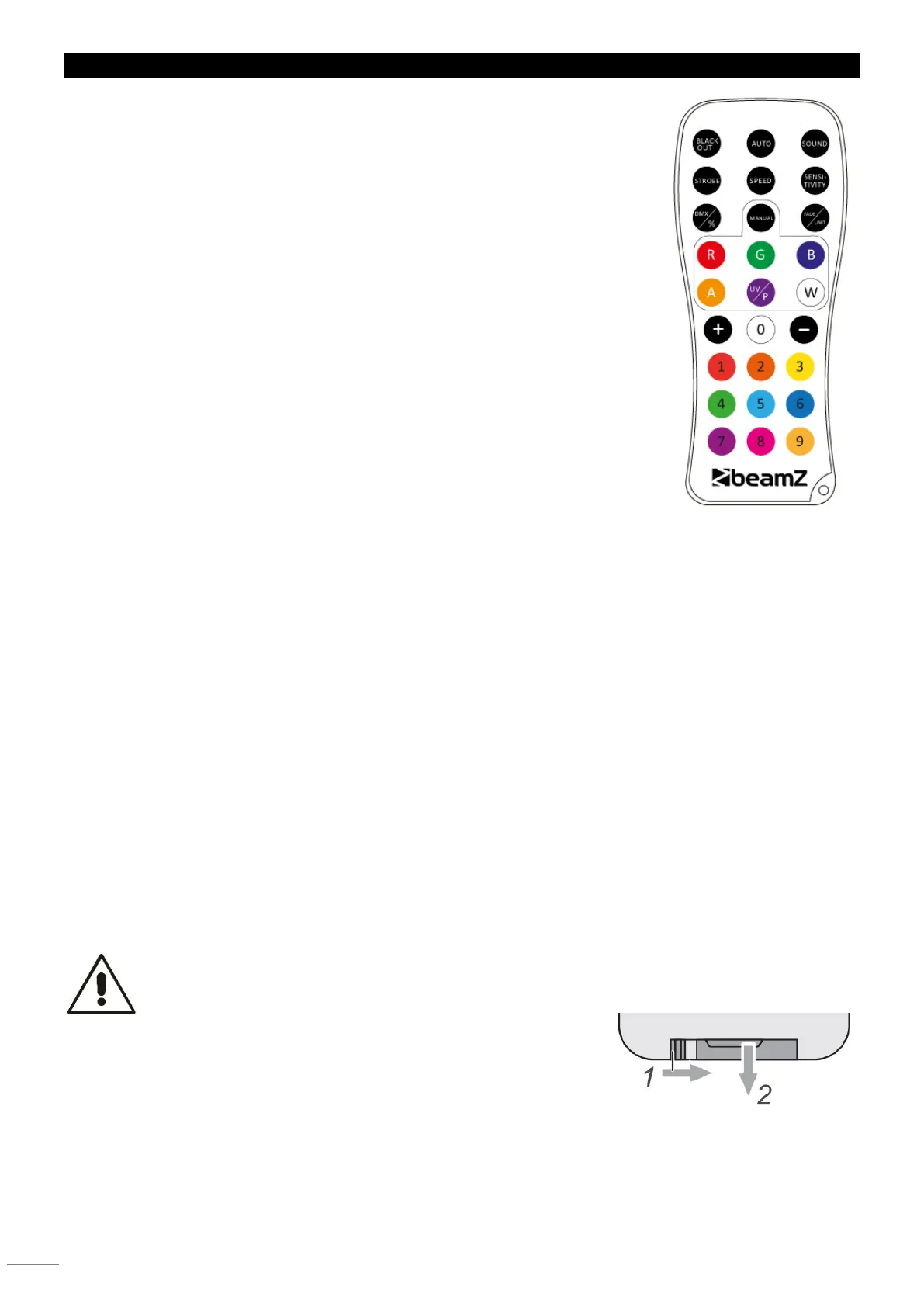 protection du support de batterie sur la face arrière de la télécommande. Sinon, la télécommande ne peut pas