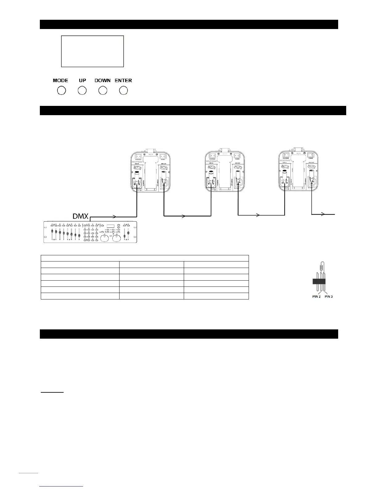 Schließen Sie das erste Gerät "DMX OUT" Busche mit dem zweiten Gerät "DMX IN", durch Verwendung eines 3-Pin DMX