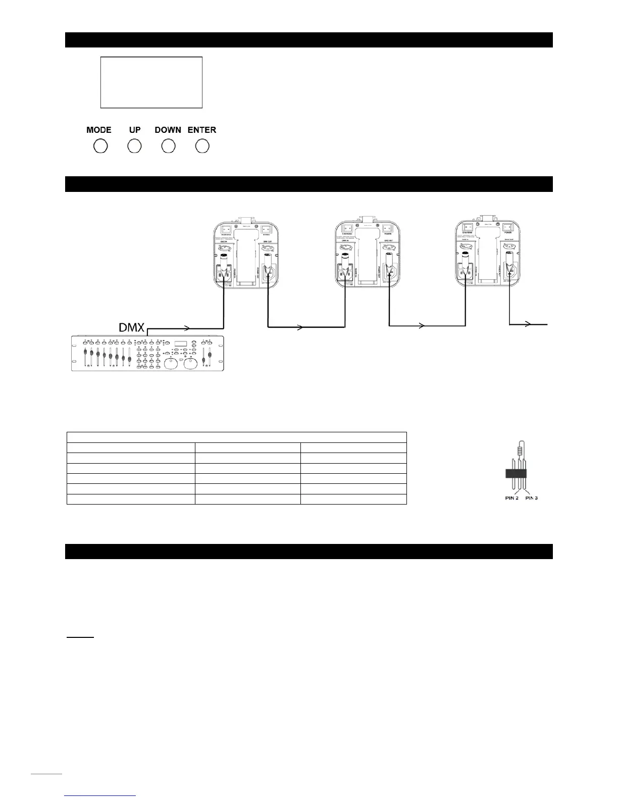 first unit in a DMX chain. Always connect the output of one unit with the input of the next unit until all units are connected.