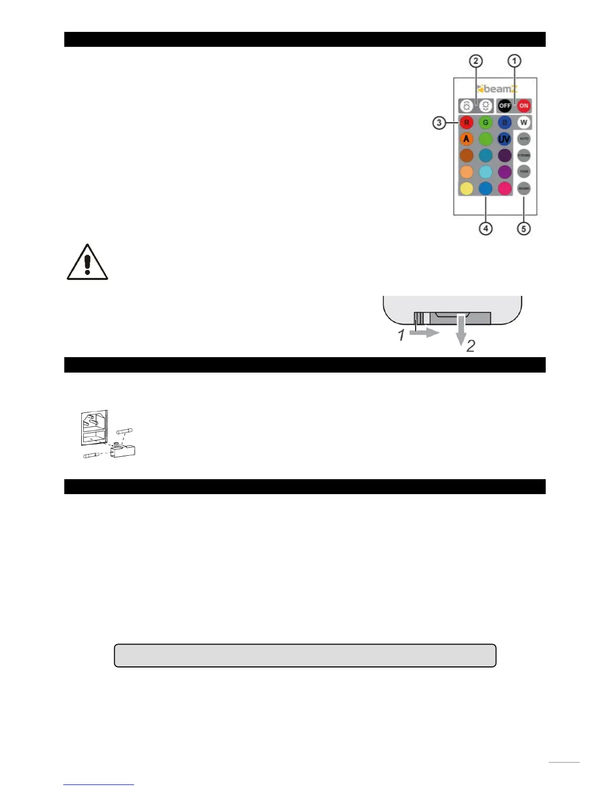 the battery support on the rear side of the remote control. Otherwise operation of the remote control is not