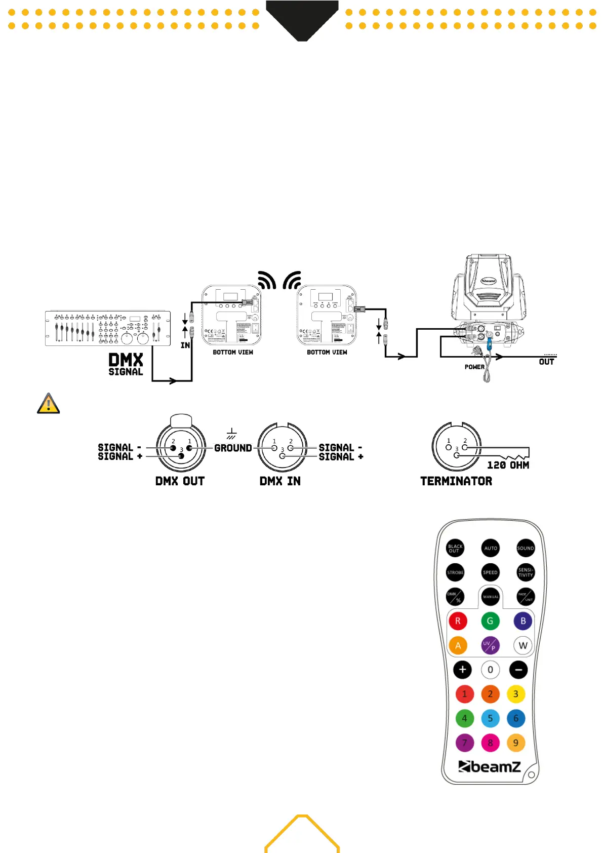 sygnałem (-) a sygnałem (+) i podłącz go do wyjścia DMX ostatniego urządzenia w linii.